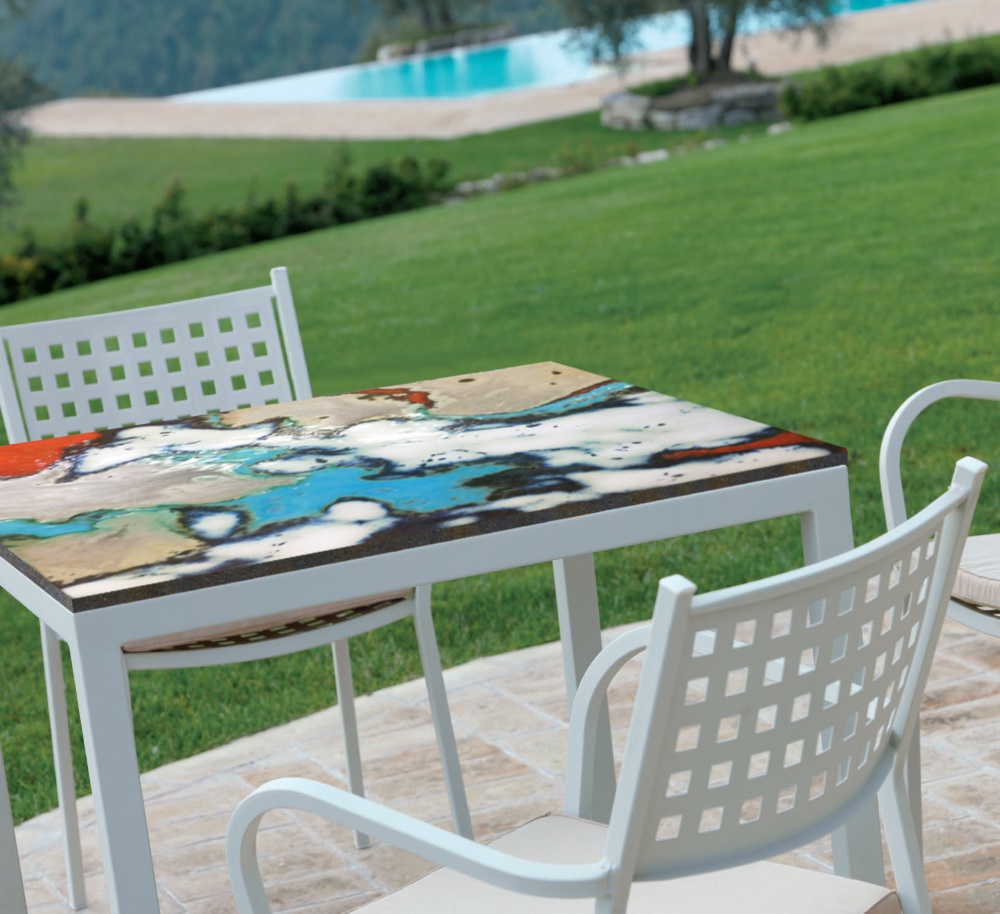 Tynde glaserede vulkansk sten plader og metalstel i varmegalvaniseret jern, skaber FRIENDS-linje, specielt til gæstfrie steder som barer, restauranter, hoteller og endda private hjem. L Vores mønstre er ganske unikke, fordi de er håndlavede, hvilket gør dem endnu mere attraktive, designet vil være ens, men aldrig nøjagtigt det samme, det er kunstnerens hånd, der gør forskellen. Dette gør det muligt for os at etablere eksklusive rum, der ikke kan gentages, i fuldstændig harmoni med kundens anmodning. Som med alle vores linjer har FRIENDS muligheden for at blive skræddersyet.