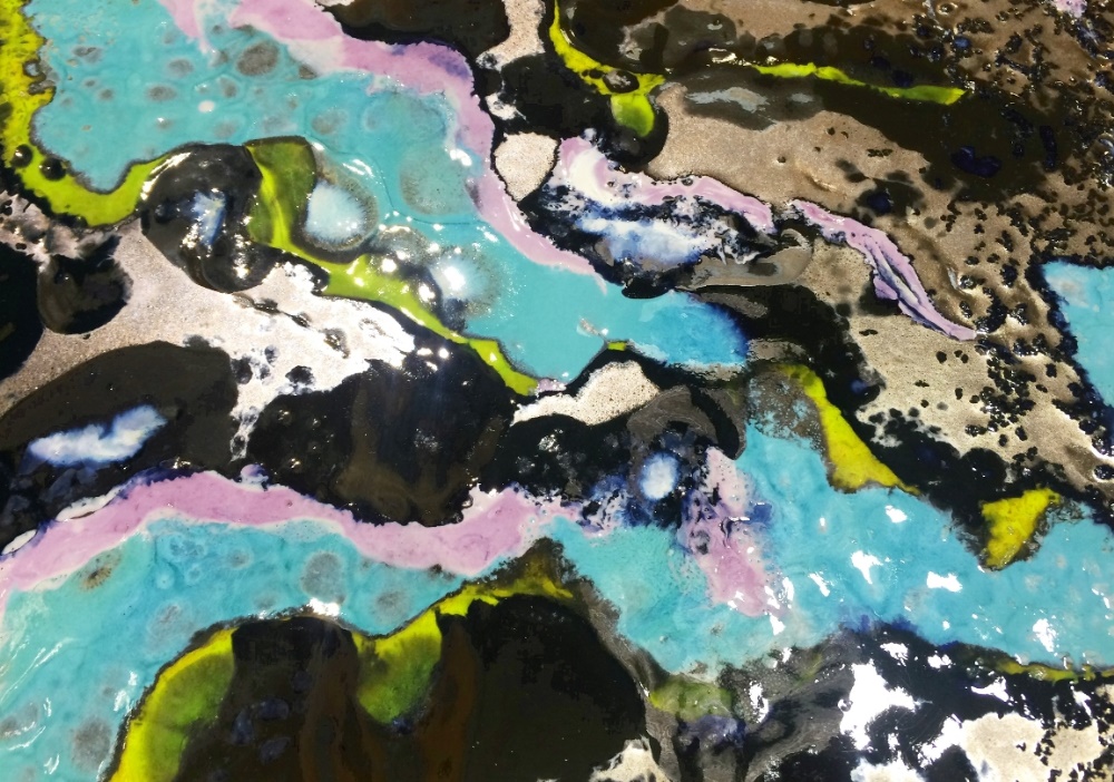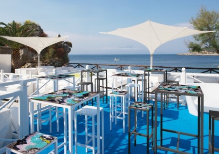 Bordene på FRIENDS-linjen er sammensat af metal stel malet i forskellige farver og toppe i vulkansk sten.